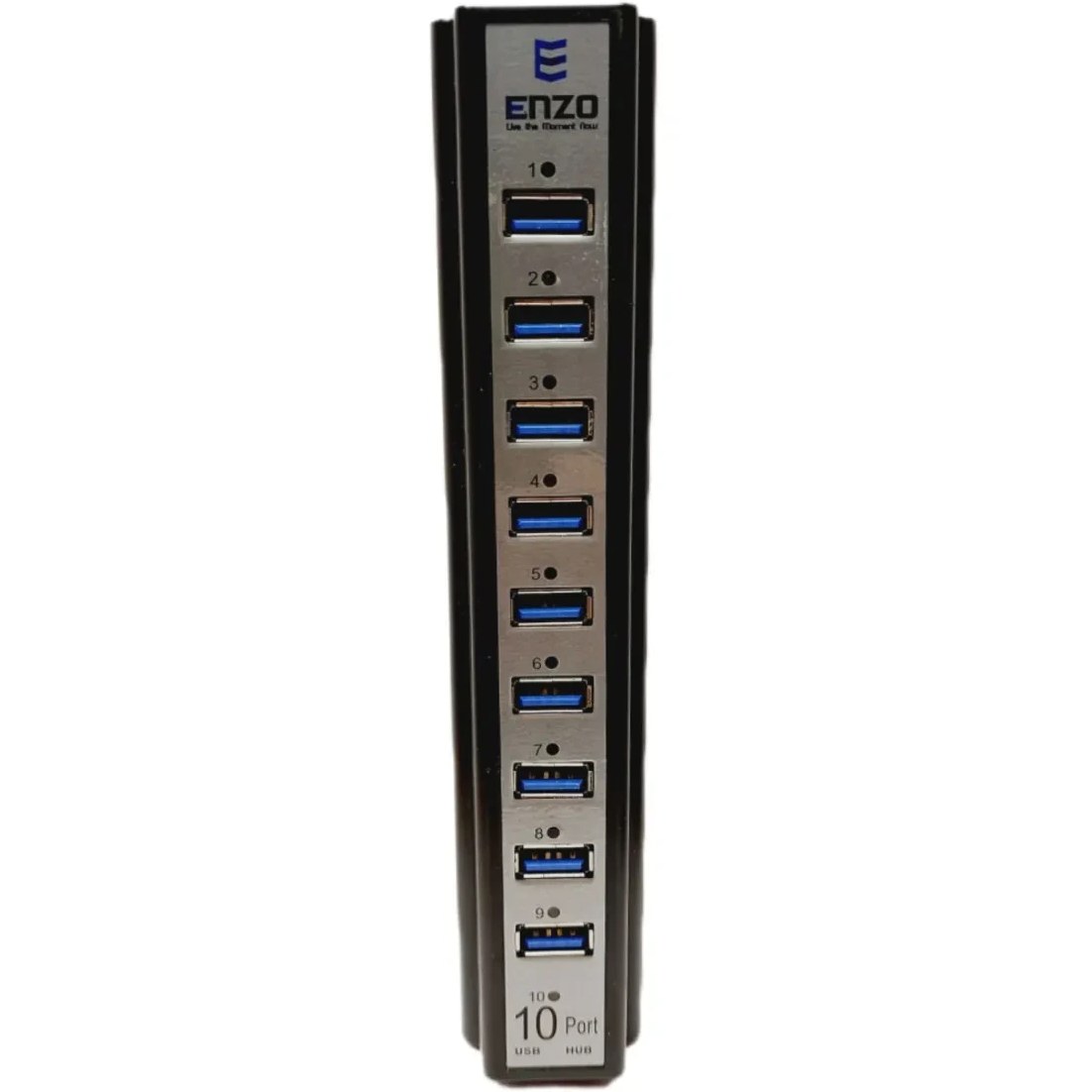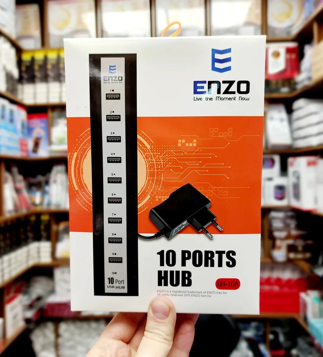 مشخصات و ویژگیهاتوسعه یک پورت به ده پورت (USB 2.0)این هاب به شما امکان میدهد از یک پورت USB دستگاه، تا ده پورت برای اتصال همزمان مختلف مانند موس، کیبورد، فلشمموری، پرینتر و… استفاده کنید.استاندارد USB 2.0 با سرعت تا 480 Mbpsپورتهای USB 2.0 سرعت قابل قبولی برای کاربردهای روزمره فراهم میکنند.همراه با آداپتور برق جداگانهدارای منبع تغذیه خارجی است تا تأمین برق پایداری برای دستگاههای با مصرف بالاتر مانند هارد اکسترنال فراهم کند.پشتیبانی از سیستمعاملهای گستردهسازگاری با ویندوز (XP تا 10)، macOS و لینوکس بدون نیاز به درایور، استفاده از آن را بسیار ساده کرده است.طراحی فشرده و سبکوزن حدود ۱۰۰ تا ۱۵۸ گرم و ابعاد تقریبی ۱۹ × ۳.۷ × ۲.۱ سانتیمتر که حمل و استفاده روی میز را آسان میکند.نور LED وضعیت پورتهابرخی نسخهها دارای چراغ LED آبی برای نمایش وضعیت اتصال هر پورت هستند.اقلام همراهدارای کابل USB 2.0 طول حدود ۱ متر و آداپتور.