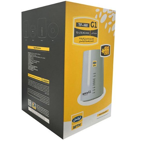 مودم رومیزی 4G/TDLTE ایرانسل مدل TF-i60 G1 محصولی از شرکت ایرانسل (Irancell) است. ایرانسل در جایگاه یک شرکت مخابراتی و به نمایندگی برند گرین پکت (greenpacket) این مودم را در ایران عرضه کرده است. مودم رومیزی 4G/TDLTE ایرانسل مدل TF-i60 G1 میتواند از شبکههای نسل 4 و 4.5 تلفن همراه پشتیبانی کند و میتوان از سیمکارتهای معمولی (FD) و TD-LTE در آن بهره گرفت. مودم TF-i60 G1 دارای تنها یک پورت LAN است که برای آن یک نقطه ضعف محسوب می شود. تا 32 کاربر میتوانند به صورت همزمان به وایفای ایجادشده توسط مودم ایرانسل TF-i60 G1 وصل شوند؛ به این معنی که میتوان برای مصارف اداری و تجاری در شرکتهای کوچک تا متوسط هم از مودم ایرانسل TF-i60 G1 استفاده کرد. چهار چراغ LED در قسمت جلویی دستگاه قرار دارد که وضعیت مودم را نمایش میدهد و با استفاده از آن نیازی به مراجعه به پنل کاربری برای بررسی قدرت سیگنال و کیفیت آنتندهی نیست.